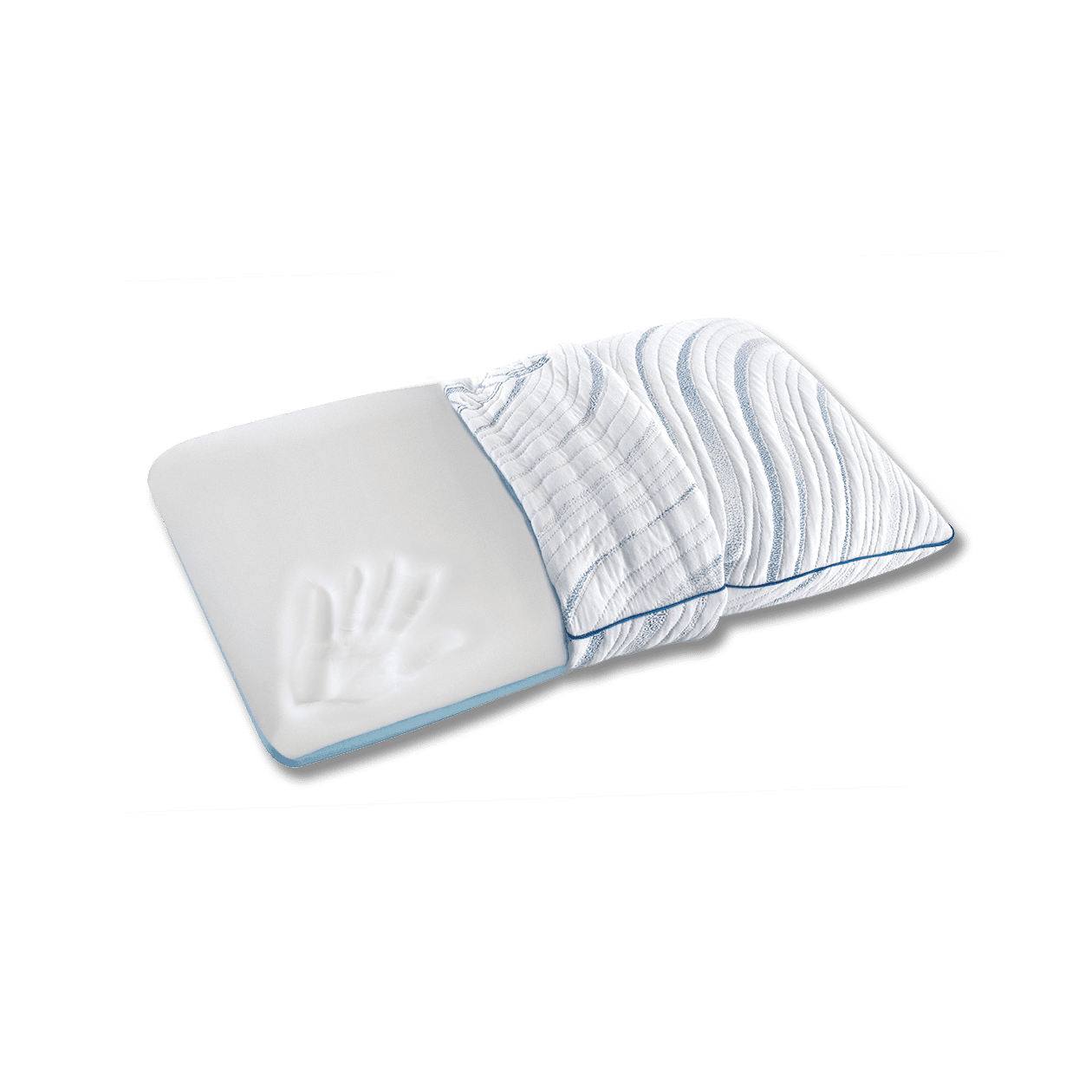 Pernă cu formă clasică și două fețe. Nucleul este o combinație între spumă cu memorie și spumă gel.