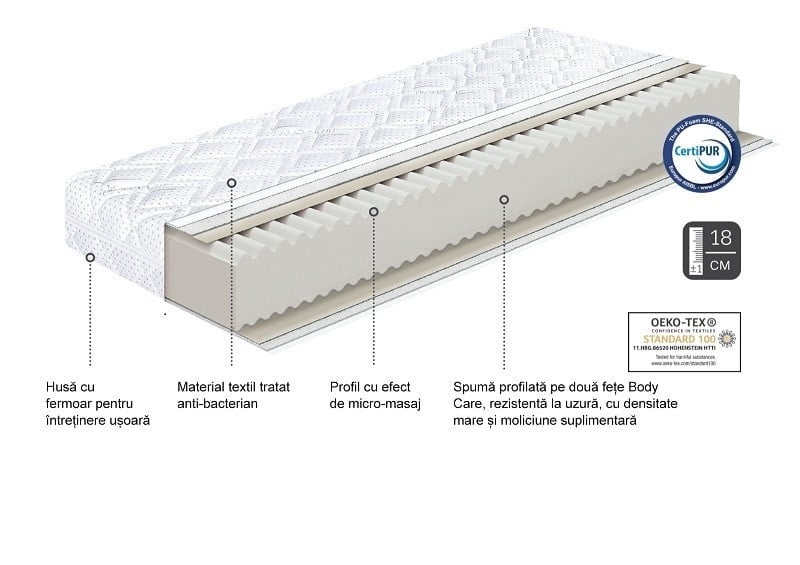 Salteaua Silver Star este o saltea anatomică al cărei miez de spumă extrem de elastică asigură o fermitate echilibrată și un confort excepțional corpului în timpul somnului.