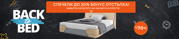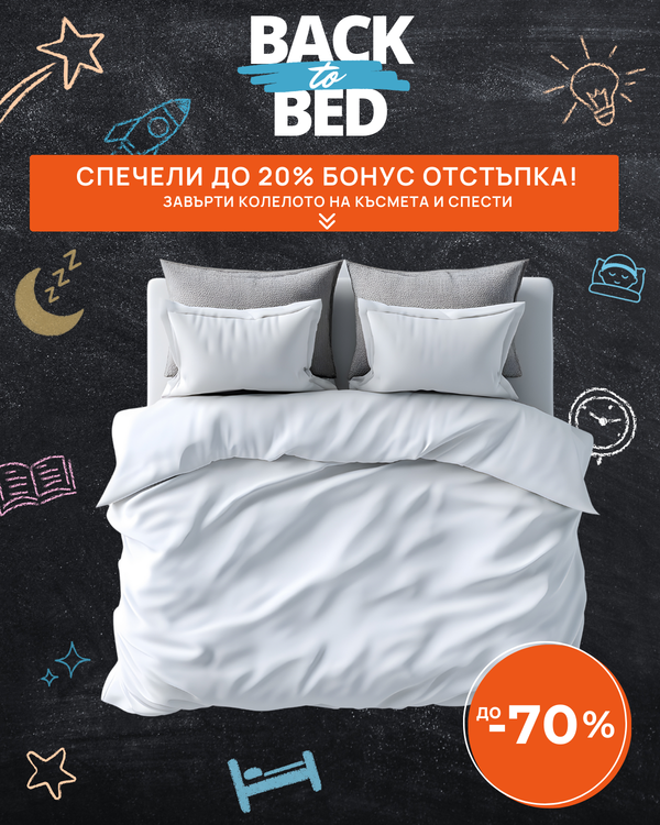 Възползвай се от специалните Back to Bed оферти с до -70%! Завърти колелото на късмета и добави до 20% бонус върху всичко в сайта – матраци, топ матраци, възглавници и още аксесоари за перфектен сън.